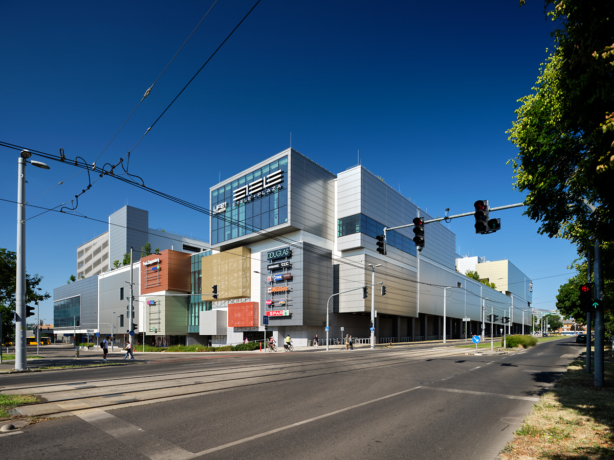 Az ETELE Plaza külső megjelenését elegáns dobozszerkezetek különleges egymásra hatása, valamint Magyarország legnagyobb, egybefüggő homlokzati üvegfelülete határozza meg. A tágas éttermi szint zöldtetős, közvetlen teraszos kapcsolatával a komplexum a legfrissebb bevásárlóközpont designt jeleníti meg. Az 55 000 m2 bérbe adható kiskereskedelmi területű bevásárló- és szórakoztató központban az üzletek mellett élelmiszer-áruház, éttermek, kávézók, fitneszterem, gyermekjátszóház és szolgáltatások széles köre található. A plázában működő Etele Cinema pedig új szintre emeli a mozi élményt.